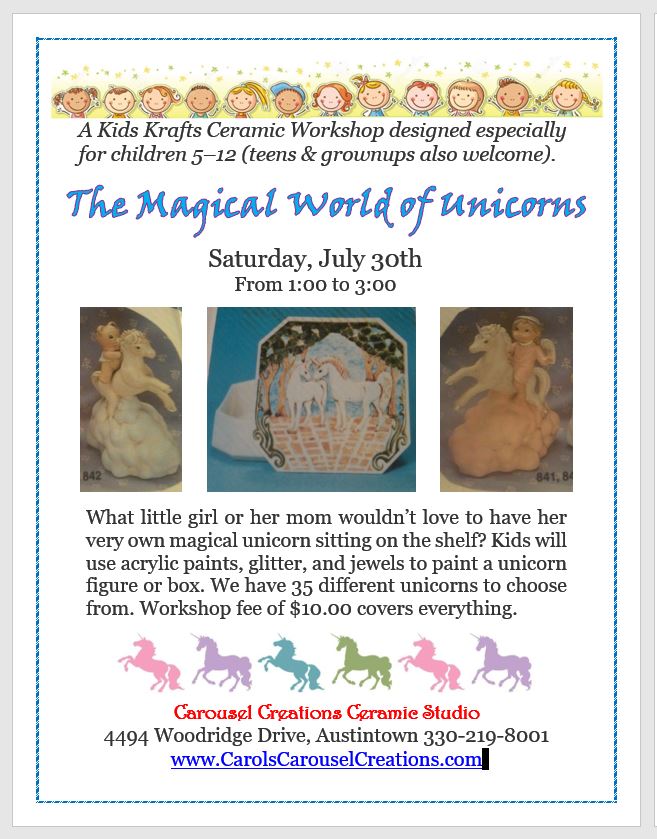KK The Magical World of Unicorns WS poster for 7-30-16