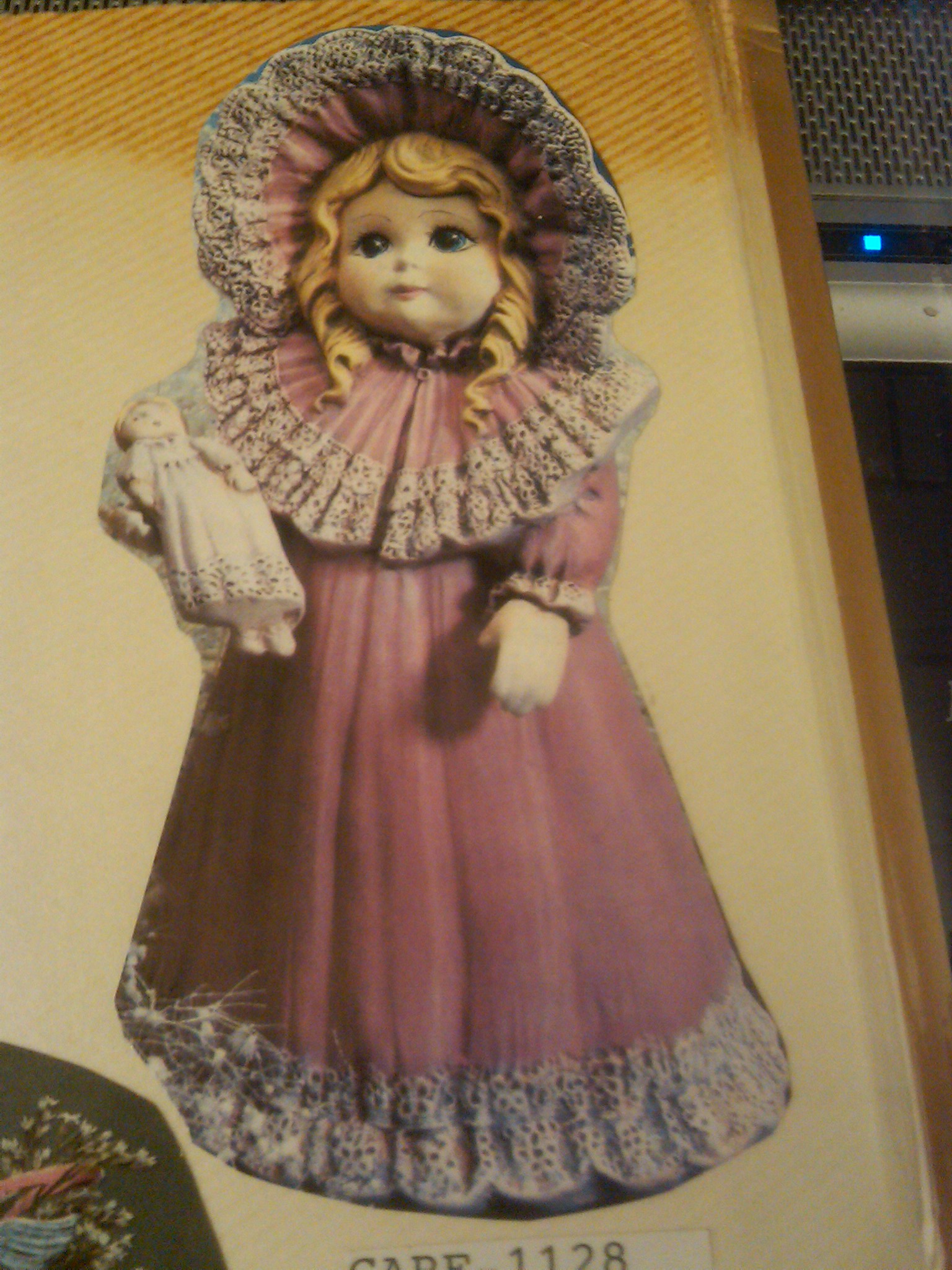 Gare 1128 girl with doll n lg lacy hat