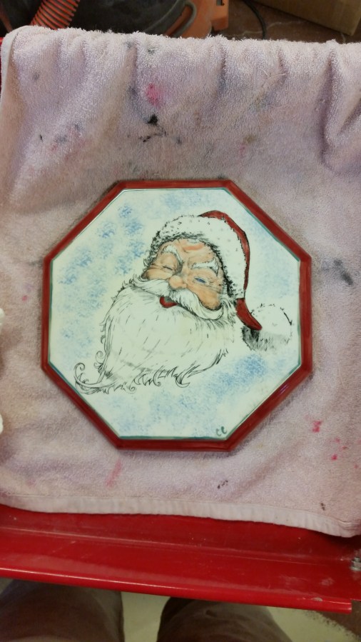 Kinzie 0129 Silkscreen Santa on Octagon Plaque (or base or trivet)