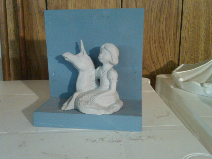 girl 2 with unicorn greenware on bookend
